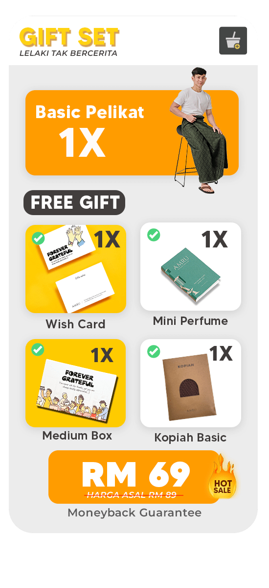 Nak beli hadiah untuk ayah, abang suami atau sahabat? kami sediakan Gift Set basic pelikat yang lengkap, jimat & banyak free gift